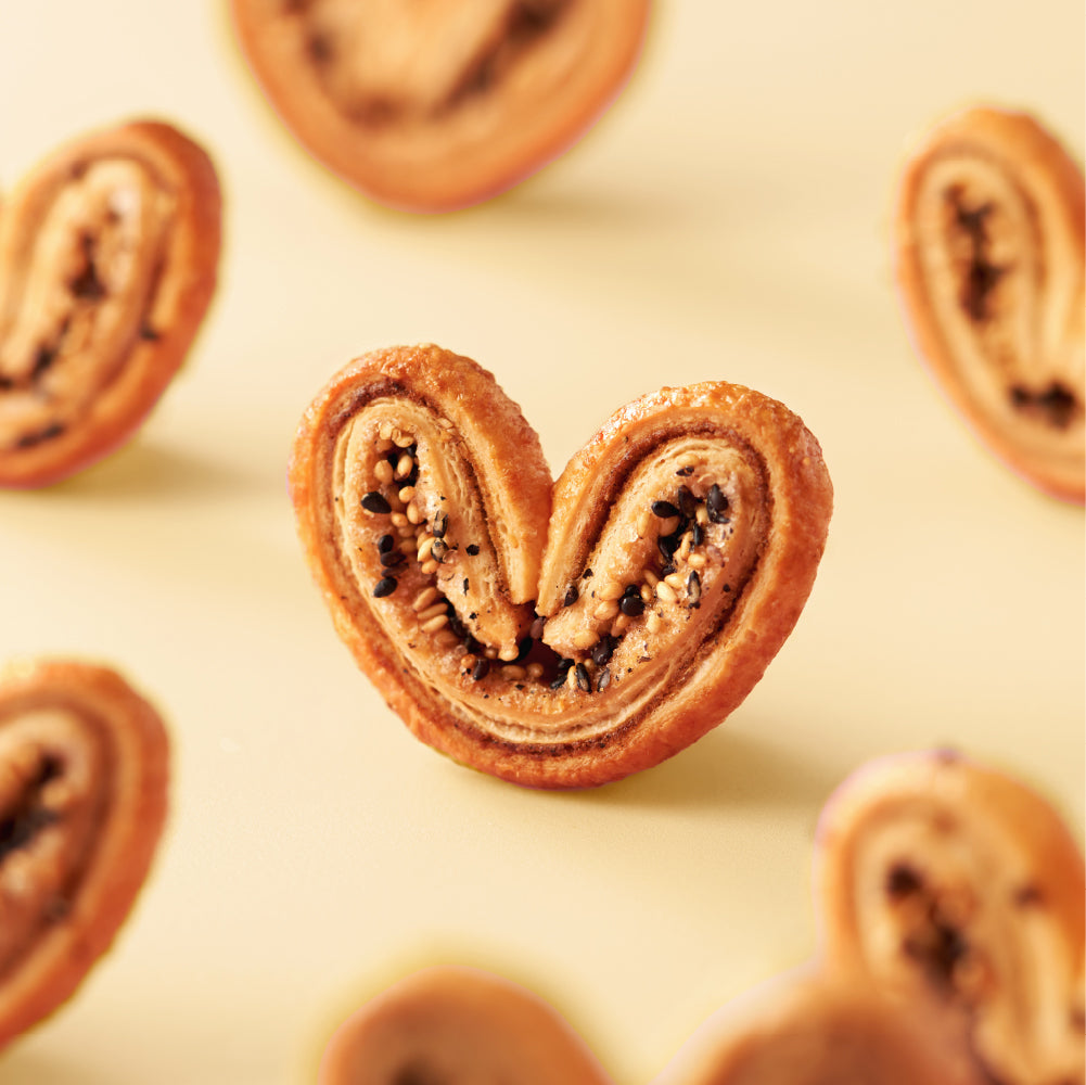 酥鬆千層酥餅,裹上深金黃色焦糖香甜外衣,混合了優雅奶油香與烘烤焦糖香,層次豐富,甜而不膩;討喜的外表下,藏著一口接一口的好味道。