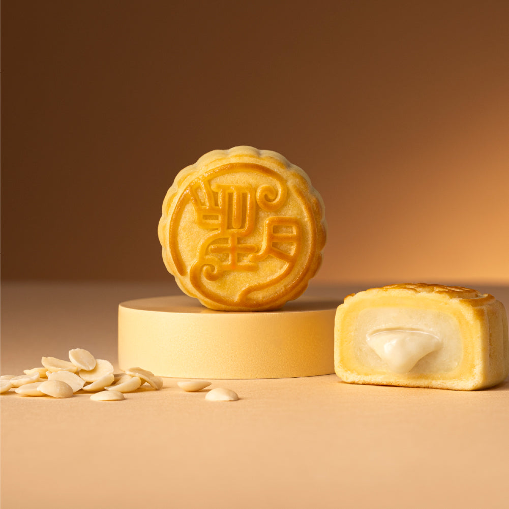 南杏清香微甜,北杏濃郁帶苦,加上杏仁奶的淡淡堅果香,混合出杏仁茶月餅獨一無二的溫潤甘香;層次豐富,齒頰留香。