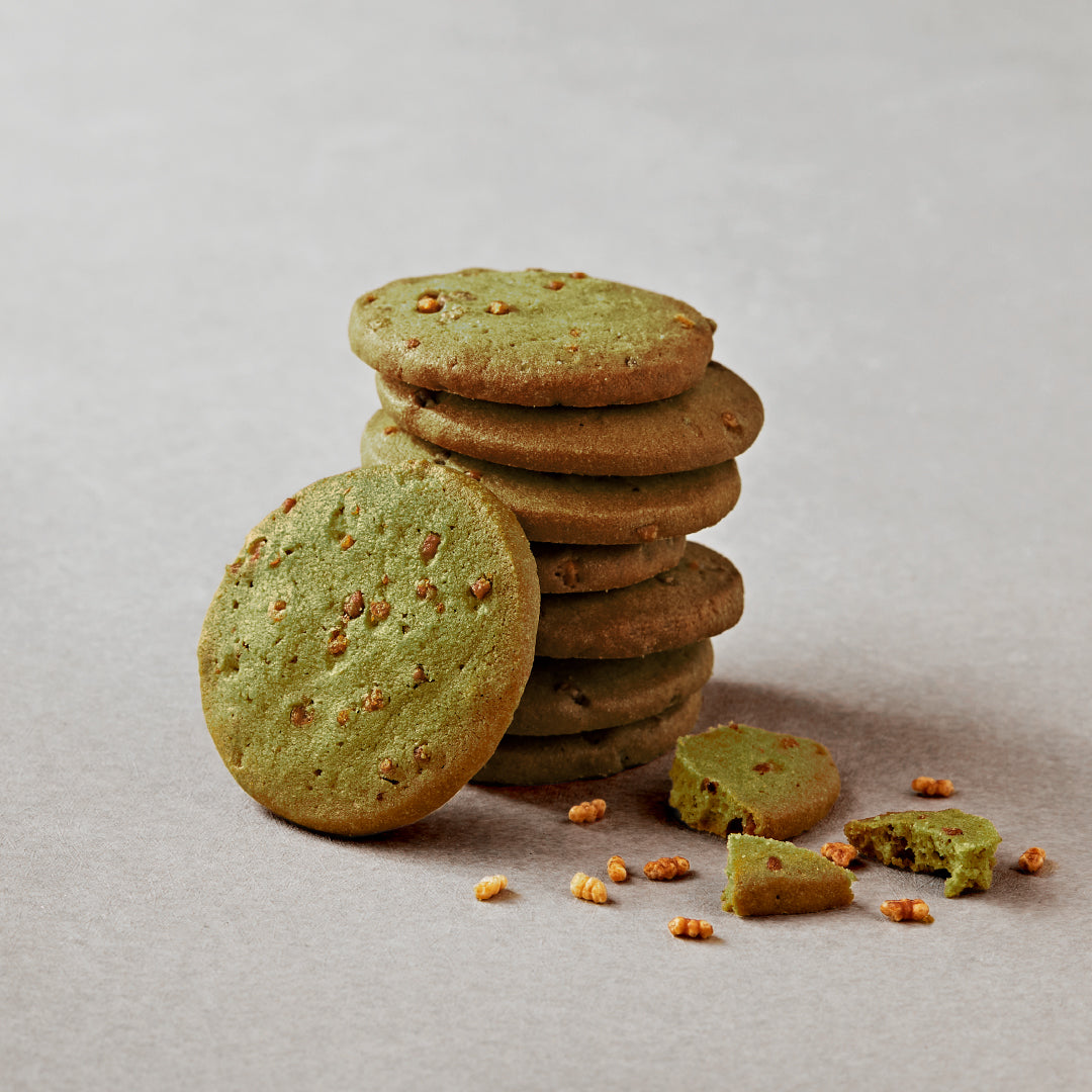 綠茶的典雅清香,配上玄米的稻穀焦香,混合到曲奇奶油香裏,茶米香氣交融,味道新鮮討喜,再加上脆脆的玄米粒,讓人齒頰留香。